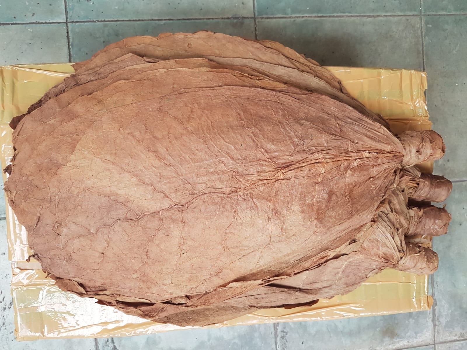Setiap lembar daun diseleksi dari grade terbaik pada saat sortasi, memastikan permukaan daun relatif halus, minim lubang, serta memiliki warna coklat alami yang matang. Tulang daun utama masih utuh sehingga memudahkan proses fermentasi lanjutan, conditioning, maupun cutting sesuai kebutuhan produksi.